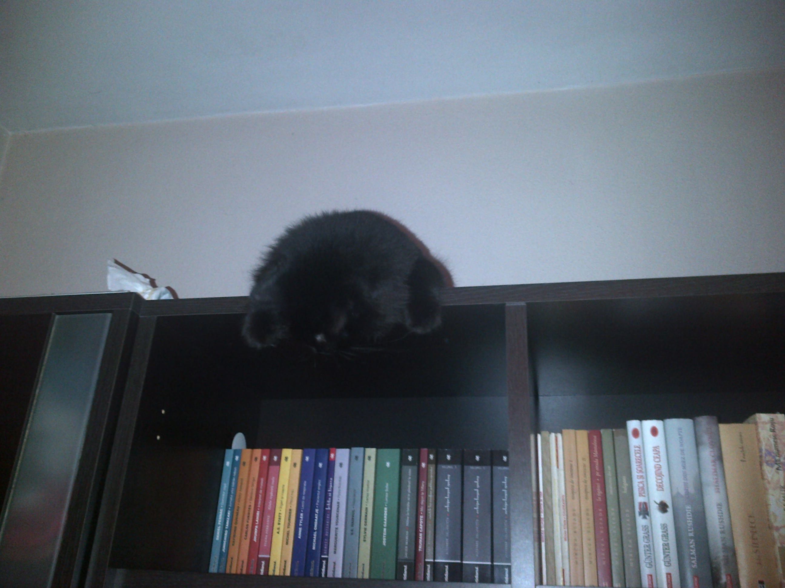 There’s a black cat in the house… and it follows me everywhere… a few minutes ago it was on the washing machine… and now is by my side sitting on the bed. I like it, it’s so cute and sweet and fluffy and furry(too furry sometimes