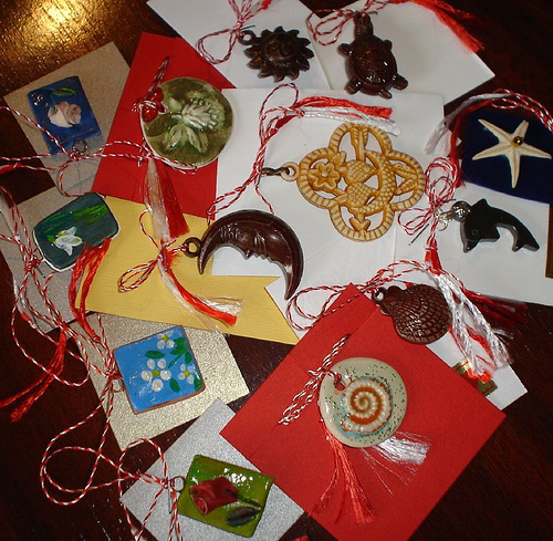 Usually the ladies are the ones that receive them but I used to give this kind of charms to all my friends. It’s a beautiful tradition and I used to wear one pinned on my jacket next to my heart all month long. Now I usually wear the red and white thread around my wrist and at the end of the month I break it and tie it to a branch in a tree. It is said that if the tree blooms beautifully your year will be prosperous. Some people wear it only until March 8th (Mother’s/Women’s day in Romania) others for two weeks, some wear it all month.