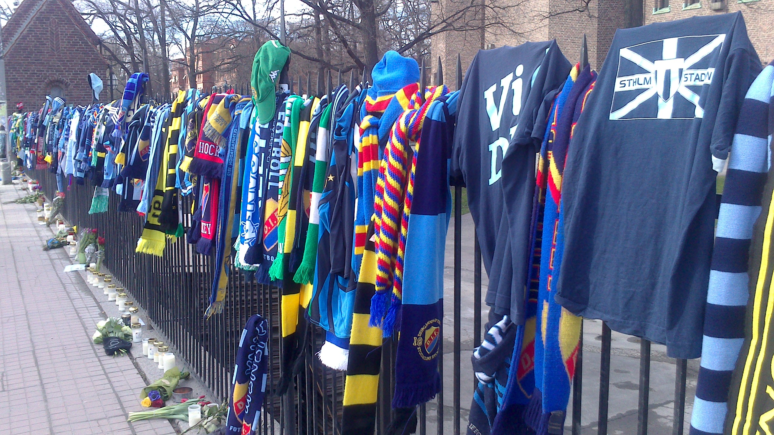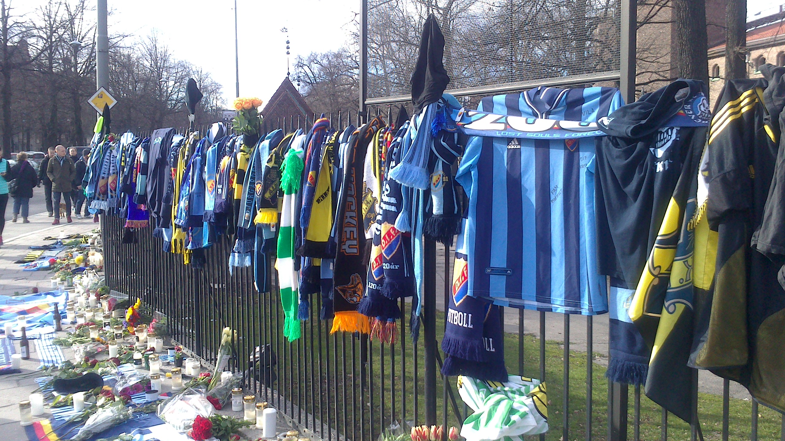 I was on my way to school this morning, in the bus, when I noticed that the fence to the Stadium on Valhallavägen was covered with football-related stuff like t-shirts and scarves. It made sense in a way, the Swedish Championship started this past week-end but I had to reach school and check the news online to see what it was really all about.
