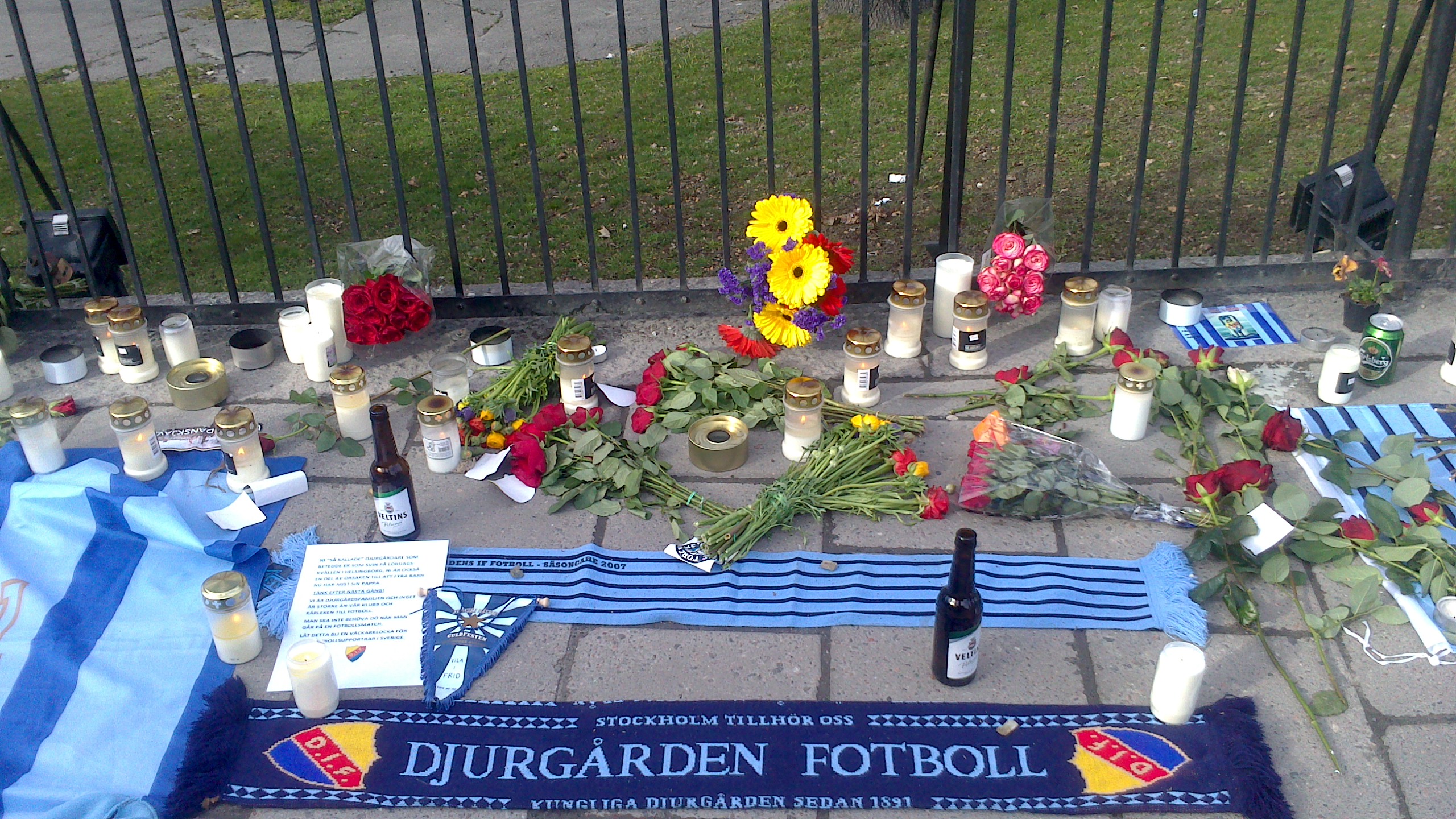 Yesterday was a sad day for Swedish football, a fan of the Djurgården (D.I.F.) team was beaten and died before the match with Helsingborg. There are articles written about this online, check here if you want more details.