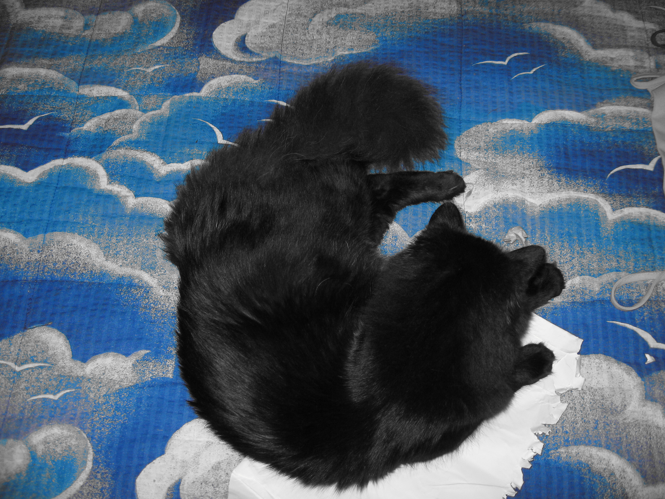 What he was very good at doing at night is offer someone company. He often curled up by my side with his head on my pillow or shoulder and purr himself to sleep. Also when there was a power outage and I was home alone (and scared in the dark) he came by my side and just put his paw on me as if he were saying “I am here”.