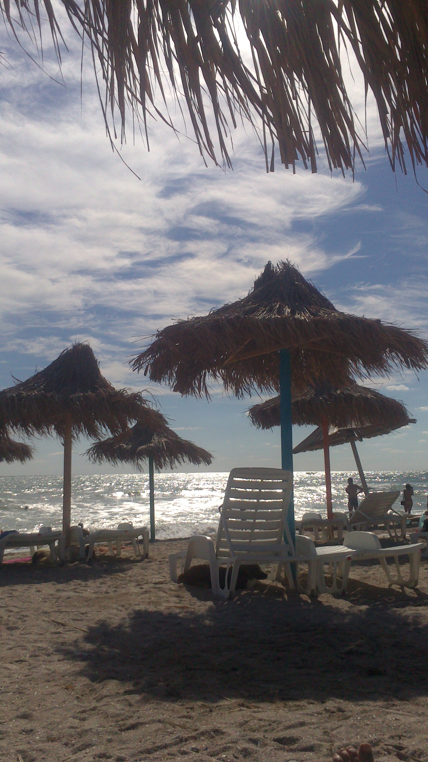 So after a week of work and half a night of freezing somewhere at a beach bar, day 1 started in the most pleasant way: the best omelet sandwich ever, a hot cup of coffee and the so very amazing atmosphere created by Led Zeppelin. Add to that a bright sunny day with clouds in the most creative shapes ever, a very angry and beautiful sea and great friends to have around. Other favorite things to listen to on the beach: The Doors, Pink Floyd, The Cranberries and lots of jazz. Chilling has never been done in a better way.